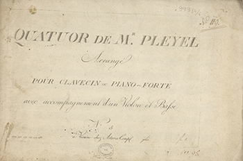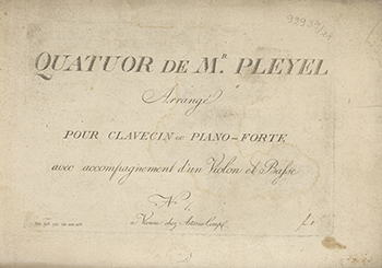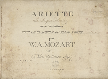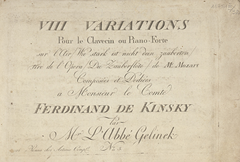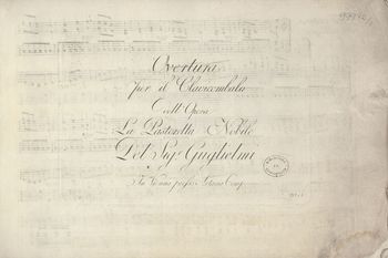 Aria "Ciel pietoso ciel clemente" per clavicembalo : ricavata dall'opera Il Pimmalione / del Sig. Cimadoro. - Vienne : Artaria Comp., [po 1790]. - 4 strony, (paginacja ciągła w klocku strony 203-206) ; 24 x33 cm.