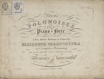 Dedykacja: a Son Altesse Madame la Princesse Elisabeth Czartoryska née Comtesse Flemming par son trés humble et trés obeissant serviteur Thomas Nawratill.
