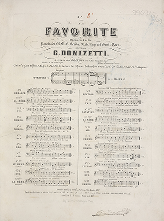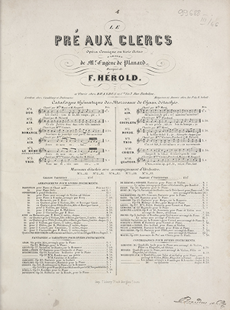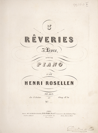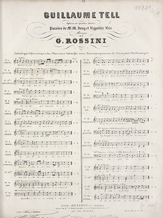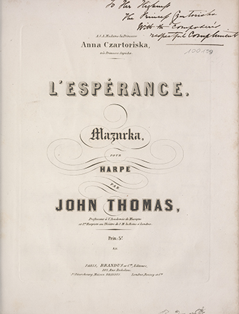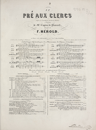 Na stronie tytułowej: "Catalog thématique des Morceaux de Chant", na ostatniej stronie: "Répertoire du chanteur" - ogłoszenie firmy wydawniczej Brandus et Cie.