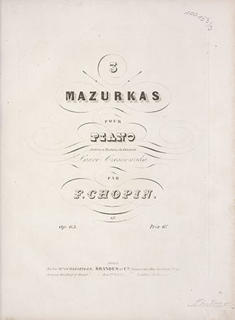 3 Mazurkas : pour piano : Op. 63 / par F. Chopin. - Paris : Brandus et Cie., [1848]. - [2], 10 stron ; 34 cm.
