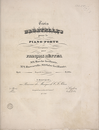 Do partytury dołączona ulotka katalogowa wydawcy: "Musique Classique Edition Peters adoptée par tous les Conservatoires de musique w języku francuskim".