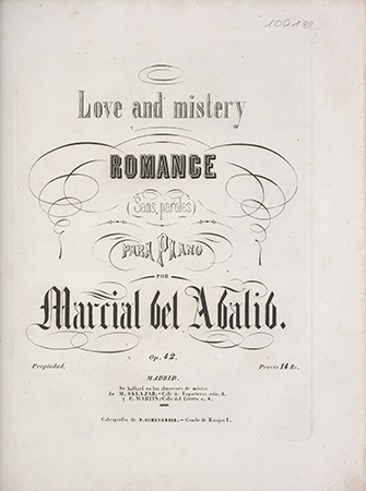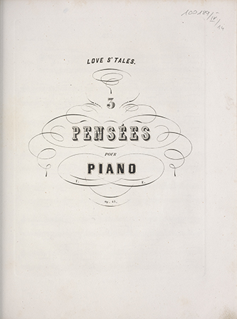 Love's Tales : 3 pensées pour piano : Op. 45 / M. del Adalid. - [Madrid : M. Salazar y C. Martin, około 1860] (Madrid : Calcog. de F. Echevarria). - [2], 8 stron ; 33 cm.