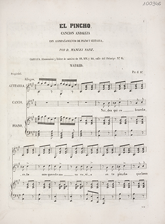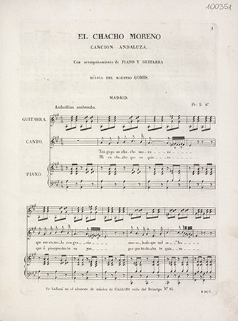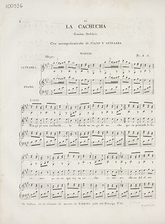 La Cachucha : cancion andaluza : con acompagňamiento de piano y guitarra. - [Madrid] : Carrafa, [18..]. - 2 strony (paginacja ciągła strony 10-11) ; 34 cm.