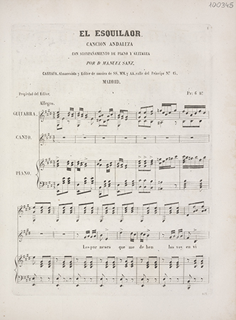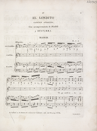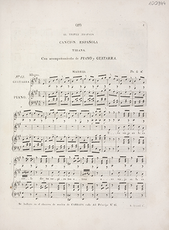El tripili trapala : cancion española : tirana : con acomp. de piano e guitarra. - Madrid : Carrafa, [około 1850]. - 3 strony (paginacja ciągła strony 27-29 ; 34 cm.