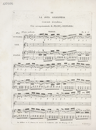 La jota aragonesa : canzion española : con acomp. de piano y guitarra : Nr 4. - Madrid : Carrafa, [18..]. - 2 strony (paginacja ciągła strony 9-10) ; 34 cm.