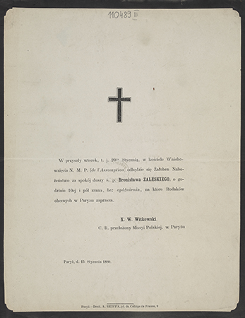 Zawiadomienie o nabożeństwie żałobnym w kościele polskim de l'Assomption.