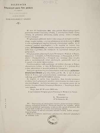 Apel J. N. Rayskiego skierowany do emigrantów w Francji, z prośbą o wsparcie i współudział w organizacji Powszechnej Wystawy Krajowej we Lwowie w 1894 roku, w nawiązaniu do załączonej odezwy organizatorów wystawy.