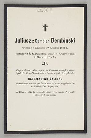 [Nekrolog. Incipit] Józefa z Walickich hr. Zdzisławowa Zamoyska [...]. - Kraków : Druk. "Czasu", 1880. - [4] strony (1 karta złożona) ; 29x23 cm.