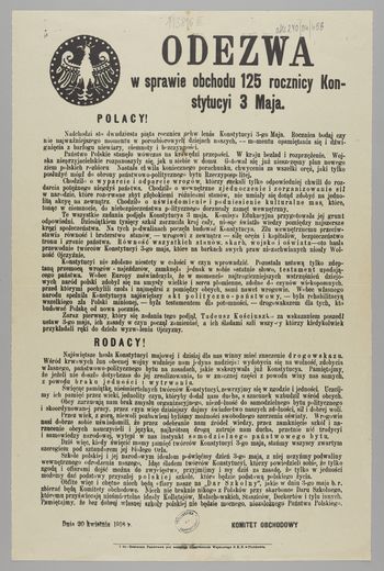 Data na druku: w Piotrkowie, w 121-szą rocznicę bitwy racławickiej.