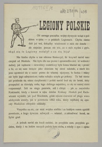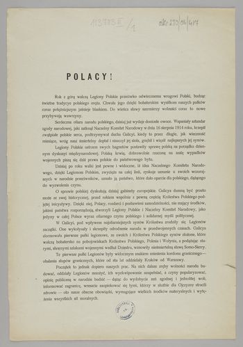 Odezwa patriotyczna wspierająca Legiony Polskie.