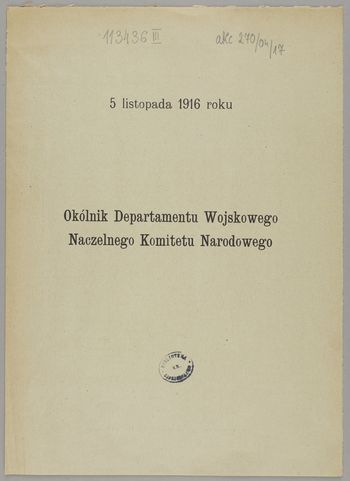 Incipit: Koledzy! Departament wojskowy NKN podjął [...]