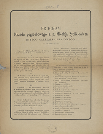Pod tekstem: W imieniu Komitetu pogrzebowego działającego z upoważnienia krajowego królestwa Galicyi i Lodomeryi z WKsięstwem Krakowskiem Szlachtowski Prezydent miasta Krakowa, Stanisław Homolacs Vice-prezes rady powiat. krakowskiej, Fryderyk Zoll poseł wadowicki.