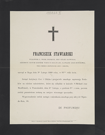 Zaproszenie na obchody rocznicowe powstania listopadowego, do sali Towarzystwa Geograficznego, w Paryżu w dniu 29 XI 1887.