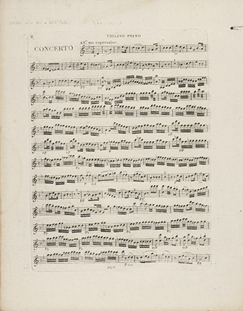 Głos violino primo do sygnatury 99526 III/1 - 99526 III/6 (głosy orkiestrowe) i do sygnatury 100305 III (głos fortepianu).