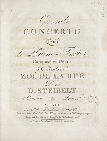 Grande sonate : pour le piano forte / composée par D. Steibelt. - Paris : M.elles Erard, [1800-1805]. - [2], 35, [1] strona : ilustracja ; 34 cm.