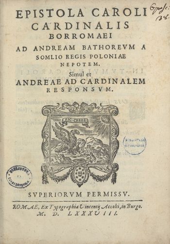 Na karcie tytułowej wersja herbu papieża Grzegorza XIV.