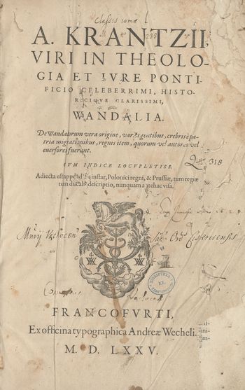 Współwydane z własnym tytułem i paginacją: Poloniae, gentisqve et Reipvblicae Polonicae Descriptionis, Libri Duo. Quorum prior Poloniae & vicinarum regionum descriptionem, hominum mores, victum & ingenium: alterreipublicae administrandae forman complectitur. Opus nunquam antea visum. Francofvrti, Ex officina typographica Andreae Wecheli, M. D. LXXV.