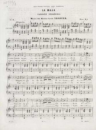 La Maja : canzon spagnuola. Nr 3 / musica de Yradier. - Paris : Flaxland, [po 1850]. - 4 strony ; 34 cm.