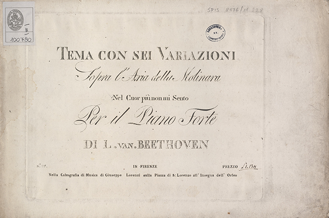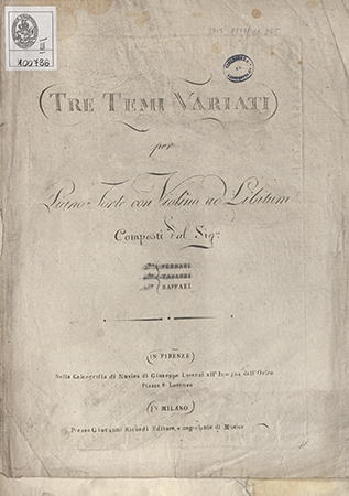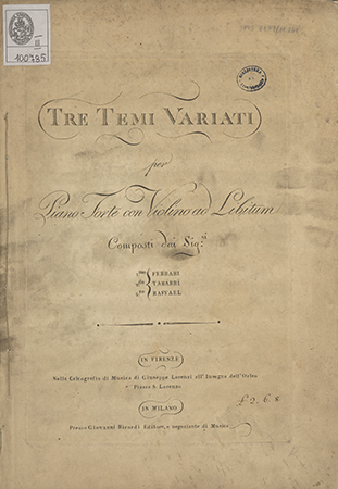 Na naklejce na dole strony tytułowej inny adres wydawniczy: "In Firenze Nella Calcografia di Musica di Giuseppe Lorenzi [...]".