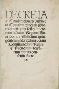 Decreta in Conue[n]tu generali Cracovien[si] : Omnium Regni ordinum consensu edita. - [Ed. C]. - [Kraków : H. Wietor, [po 1539 przed VI 1541]. - [6] kart, sygnowanie A⁶ ; 2°.