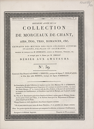 (Collection de morceaux de chant, airs, duo, trio, romances, etc. Extraits des oeuvres des plus célèbres auteurs [...], traduits en français par M. Desriaux et arrangés pour le piano par Thollé ; Nr 59)