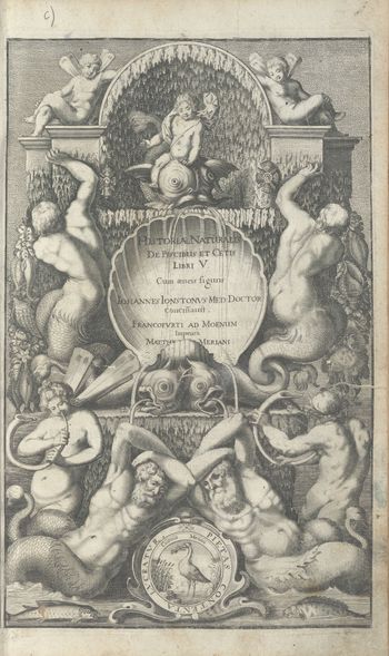 Historiae Naturalis De Piscibus Et Cetis Libri V ; Cum aeneis figuris Johannes Jonstonvs Med: Doctor Concin[n]auit. - Francofvrti ad Moenum : Impensis Matthaei Meriani, [1650]. - 228 stron, XLVII kart tablic, sygnowanie A-Z⁴, Aa-Ee⁴, []² : ilustracje miedziorytowe ; 2°.