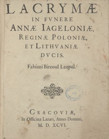 Data druku na stronie tytułowej: "M.D.xcvj".