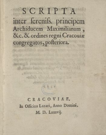 Data wydania na stronie tytułowej: "M.D.LXXXVI".