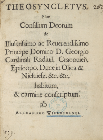 Dedykacja: Serrenissimo Principi et Domino Henrico Dei Gratia Electo Regi Polonię [...] Nicolaus Kosobuczki, notarius terrestris Ploceñ.