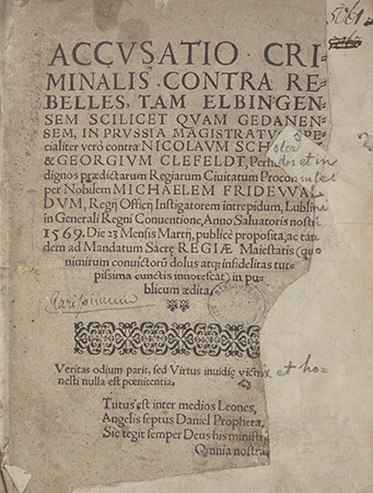 Na stronie tytułowej: "M.D.LXXIX.", tytuł w zdobnej ramce. Marginalia.