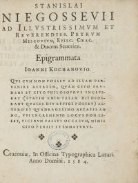 Dedykacja: Serenissimo potentissimoque principi ac domino, domino Stephano, dei gratia Regi Poloniae, magno duci Lithvaniae, Russiae, Prussiae, Masoviae, Samagittiae, Livoniae, &c. Transylvaniae Principi.