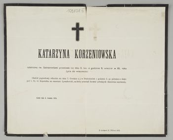 Zawiadomienie o śmierci i nabożeństwie żałobnym.