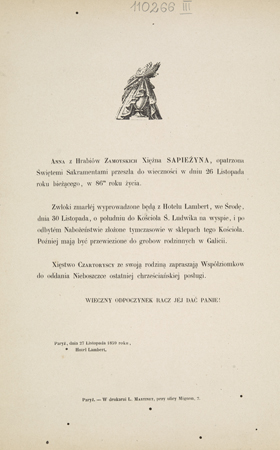 Zawiadomienie o pogrzebie na cmentarzu Montmartre (Paryż).