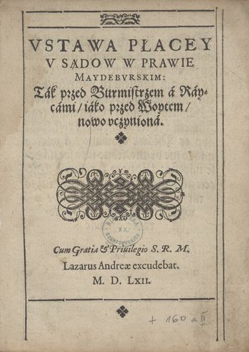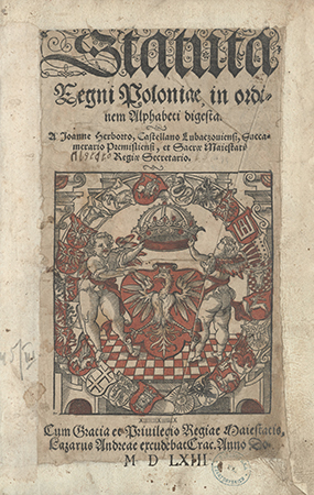 Statuta Regni Poloniae, in ordinem alphabeti digesta / A Joanne Herborto [...] - Crac : Lazarus Andreae excudebat, [I] 1563. - [6], 1-306, [7] kart, sygnowanie A⁶, A-Z⁶, a-z⁶, Aaa-Eee⁶, Fff⁴, Ggg² ; 2°.