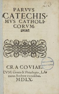 Parvus Catechismus Catholicorum. - Cracoviae : Lazarus Andreae excudebat, 1560. - [28] kart, sygnowanie A-G⁴ : ilustracje ; 8°.