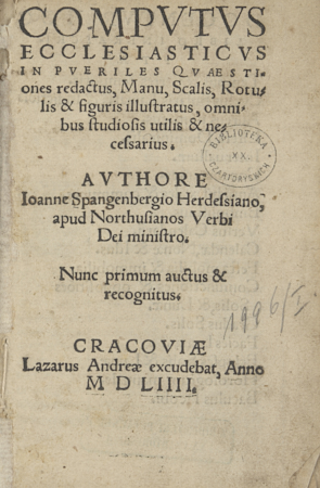 Na stronie tytułowej data: M. D. Lxii, rzeczywista data druku wg Budzyka.