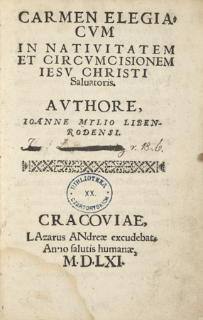 Na stronie tytułowej: "Anno salutis humanae M.D.LXI".
