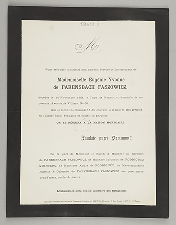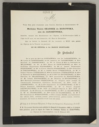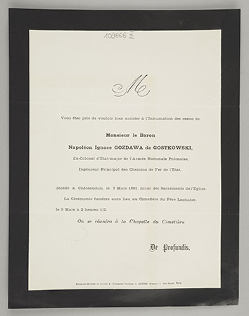 Zawiadomienie o pogrzebie na Cimetière du Père Lachaise (Paryż).