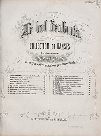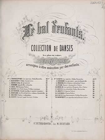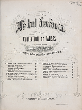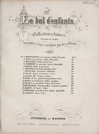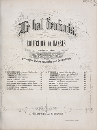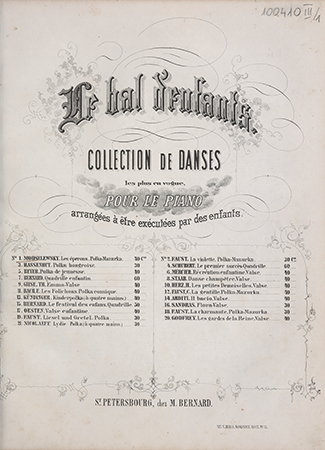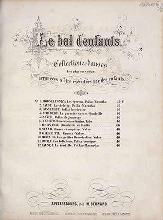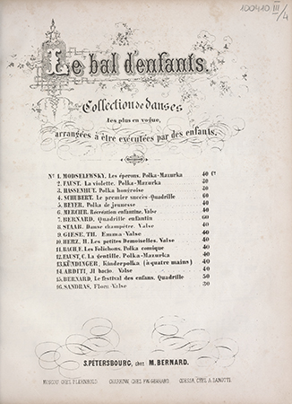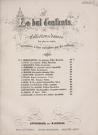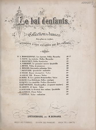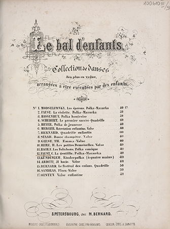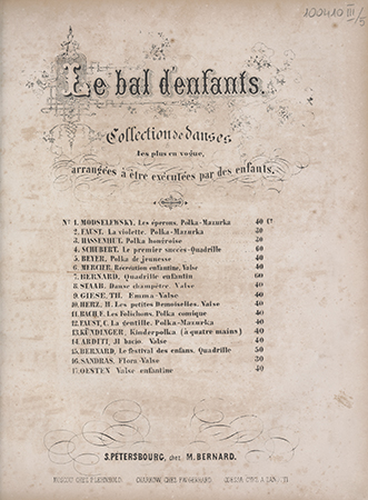 Quadrille enfantin / par M. Bernard. - S. Petersbourg : chez M. Bernard, [1858]. - [2] strony (paginacja ciągła strony 21-25), [1] strona ; 30 cm.