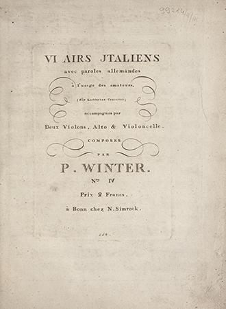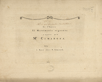 De l'opera Il Matrimonio segretto. Nr 3, Aria / compose par Mr Cimarosa. - Bonn : chez N. Simrock, [1801-1802]. - 12 stron (paginacja ciągła strony 24-33) ; 25x31 cm.