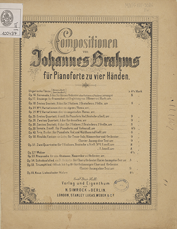 (Compositionen von Johannes Brahms für Pianoforte zu vier Händen ; Erstes Heft)
