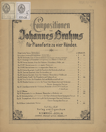 (Compositionen von Johannes Brahms für Pianoforte zu vier Händen ; Zweites Heft)