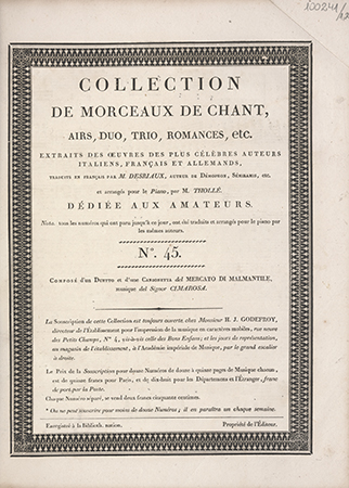 Zawiera m.in.: Canzonetta nel Mercato di Marmantile / del signor Cimarosa.