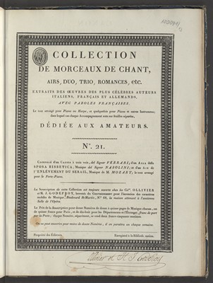 Aria de L'enlévement du Sérail / par Mozart. - Paris : Ollivier et H. J. Godefroy, [br.d.]. - (paginacja ciągła stron 12-15) ; 34x26 cm.