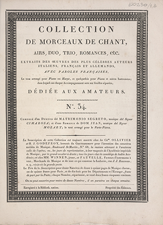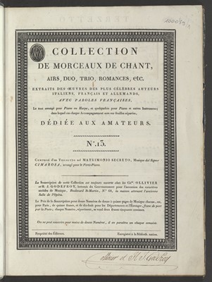 Duetto del Matrimonio segreto / del signor Cimarosa. - Paris : Ollivier et H. J. Godefroy, [między 1803 i 1805]. - [1], 15 stron ; 34x26 cm.