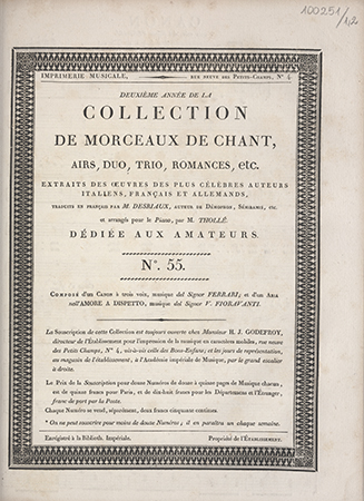 (Collection de morceaux de chant, airs, duo, trio, romances, etc. Extraits des oeuvres des plus célèbres auteurs [...], traduits en français par M. Desriaux et arrangés pour le piano par Thollé ; Nr 55)