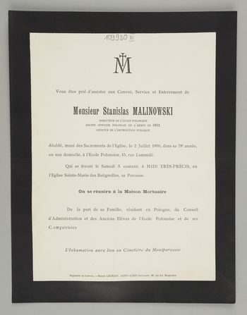 Zawiadomienie o pogrzebie na cmentarzu St-Ouen..
