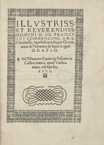 Odprawa posłow greckich / Iana Kochanovvskiego. - W Warszawie : [Szarfenberger Mikołaj, po 12 I] 1578. - [16] kart, sygnowanie A-D⁴ ; 4°.
