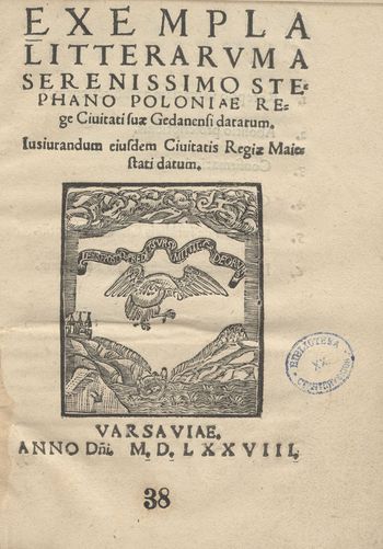 Na verso karty tytułowej królewski herb Stefana Batorego; na recto karty D3 portret Michaela Friedwalda, a na verso jego herb.