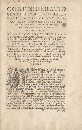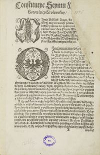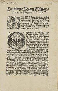 Constitucye seymu walnego koronaciey krolewskiey 1576. - [Ed. A]. - Kraków : [Szarfenberger Mikołaj, po 30 V 1576]. - [10] kart, sygnowanie A-B⁴, C² ; 2°.